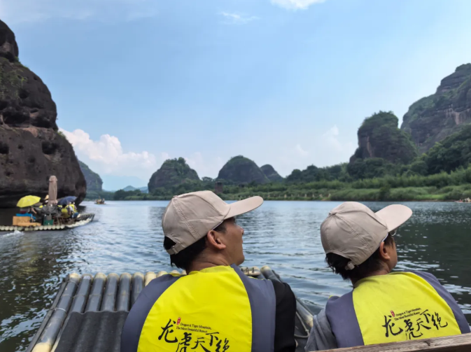 夏日清凉之旅 | 游双龙探秘、戏望仙谷揽胜,我们在山水间共绘夏日诗篇盛夏的阳光热情似火,浙江映山红纺织科技有限公司工会为感谢全体员工的辛勤付出,精心组织了一场为期三天的清凉之旅!2025年7月31日至8月2日,全体同仁乘坐多辆大巴,跨越浙江、江西两省,探访了金华双龙洞、江西望仙谷、龙虎山、五龙源漂流等地方,更在美食与欢笑中尽享夏日的惬意!现在,让我们跟随镜头,回顾这段美好的旅程吧! 清晨的雨后,我们出发奔赴清凉~竹筏缓缓顺流而下,两岸青山如黛,千年悬棺依崖而悬,恍若时空交错。筏工用竹篙轻点水面,讲述着张天师炼丹、道教起源的传奇故事,而远处道观的晨钟暮鼓声隐约传来,更添几分仙气缭绕的意境。同事们倚坐在竹筏上任微风拂面,不时举起手机拍摄两岸奇峰与倒影,或与对岸同样乘筏的同事挥手致意。 水天相映成趣,满目青山碧湖 |